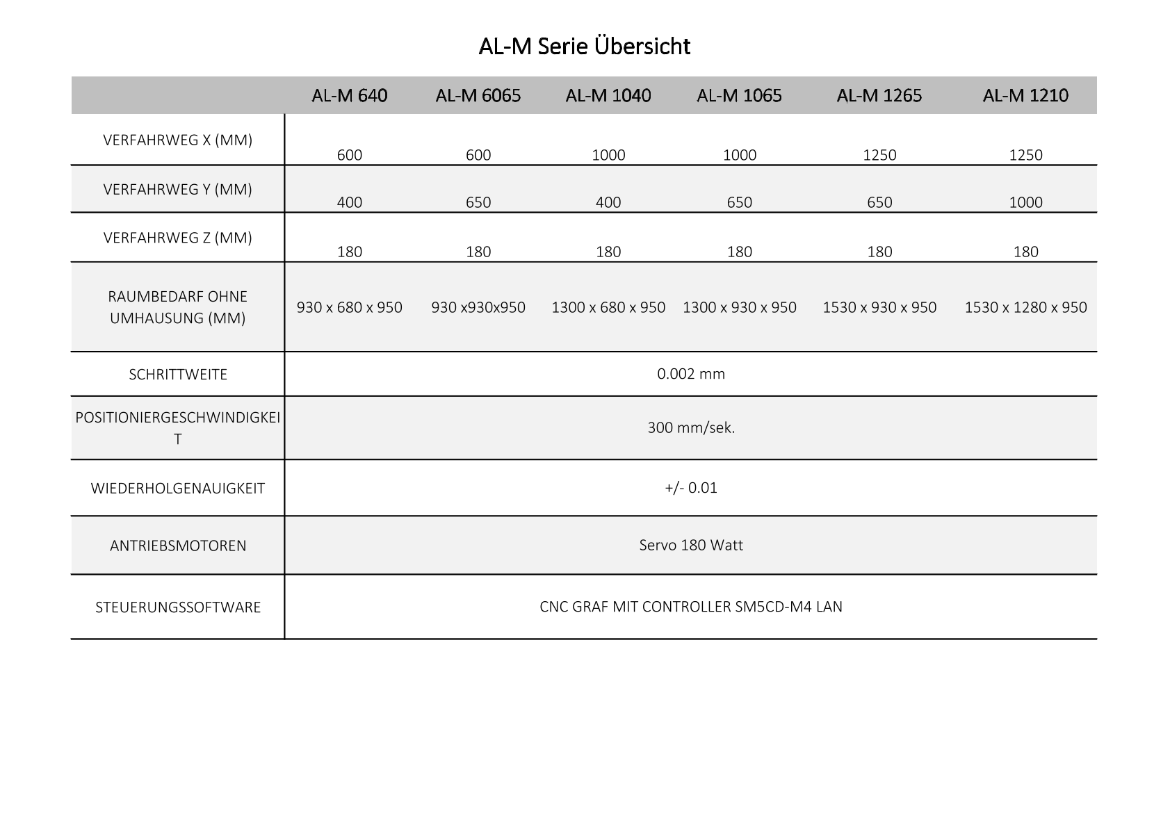 | Technische Daten | AL-M 640 | AL-M 6065 | AL-M 1040 | AL-M 1065 | AL-M 1265 | AL-M 1210 |