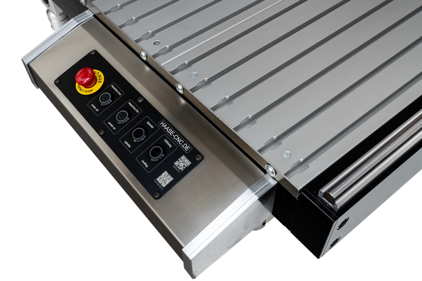 Durch die insgesamt 12 doppelt kugelgelagerten Spezialrollen auf der X- und Y-Achse, die auf hochwertigen Rundwellen nahezu reibungs- und spielfrei laufen, bieten wir ein überlegenes Führungssystem. Dies eliminiert Vibrationen im Fahrverhalten und verbessert die Fräsergebnisse erheblich. Unsere Rollenführungen sind präzise, stabil, langlebig und nahezu wartungsfrei, ohne dass bei Gleitführungen übliche Durchhängen.