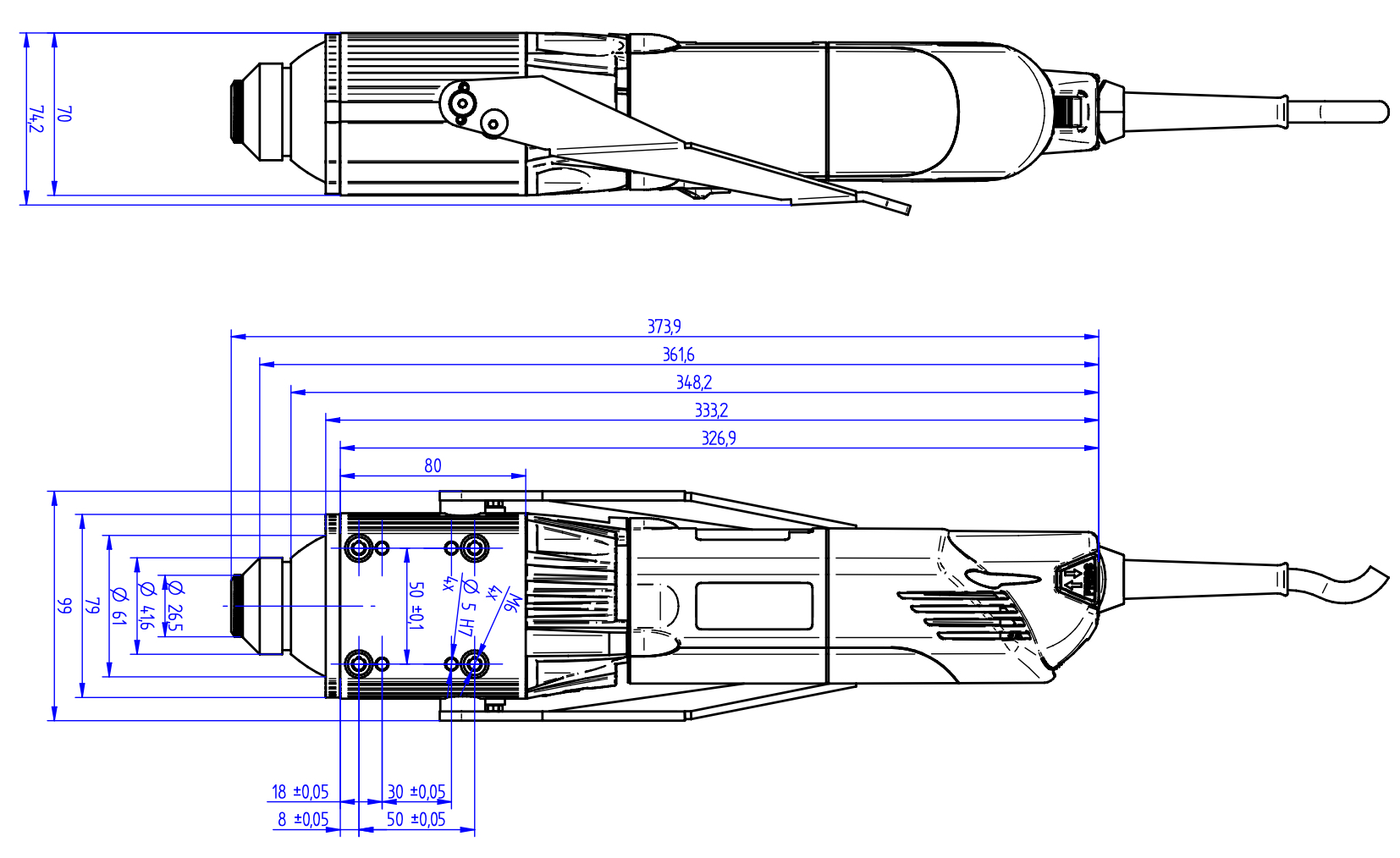 - Netzkabel mit 4 m Gummizuleitung