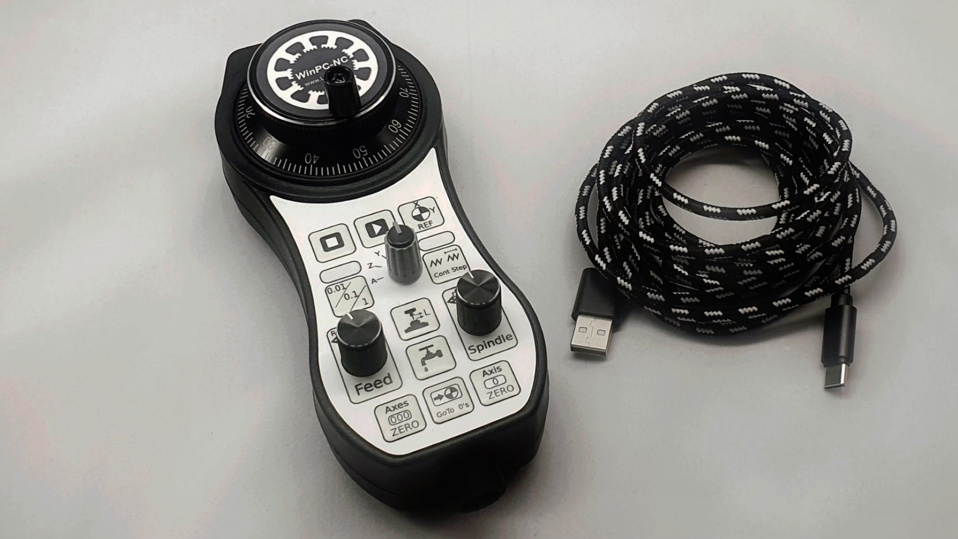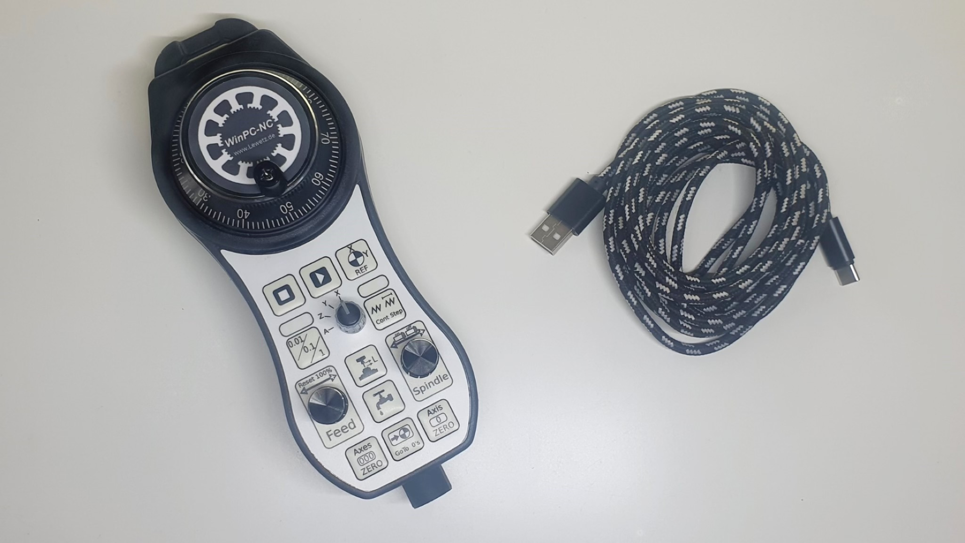 Das Handrad HR-20 ist mit einem wechselbaren 3 m langen Kabel und USB-Stecker ausgerüstet. Mit dem neuen ergonomischeren Gehäuse liegt das HR-20 noch besser in der Hand und kann mit dem Haltebügel perfekt an der CNC-Maschine verstaut werden. Die Achsen werden am HR-20 komfortabel über einen Drehschalter ausgewählt. Das Handrad wird automatisch von Windows eingebunden und muss lediglich in den WinPC-NC Parametern unter Grundeinstellungen-Schnittstelle aktiviert werden. Starten Sie heute und erleben Sie eine neue Dimension der Maschinenbedienung mit WinPC-NC und dem Handrad HR-20.