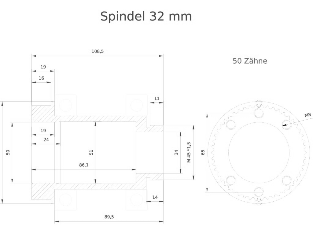 Mutteraufnahme/Rotationskörper für eine 32mm Kugelumlaufmutter nach Din
