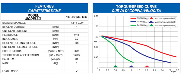 Der Motor 103-H7126-1740 hat einen 56 mm großen Flansch (NEMA 23) mit einem Haltemoment von 165 Ncm.